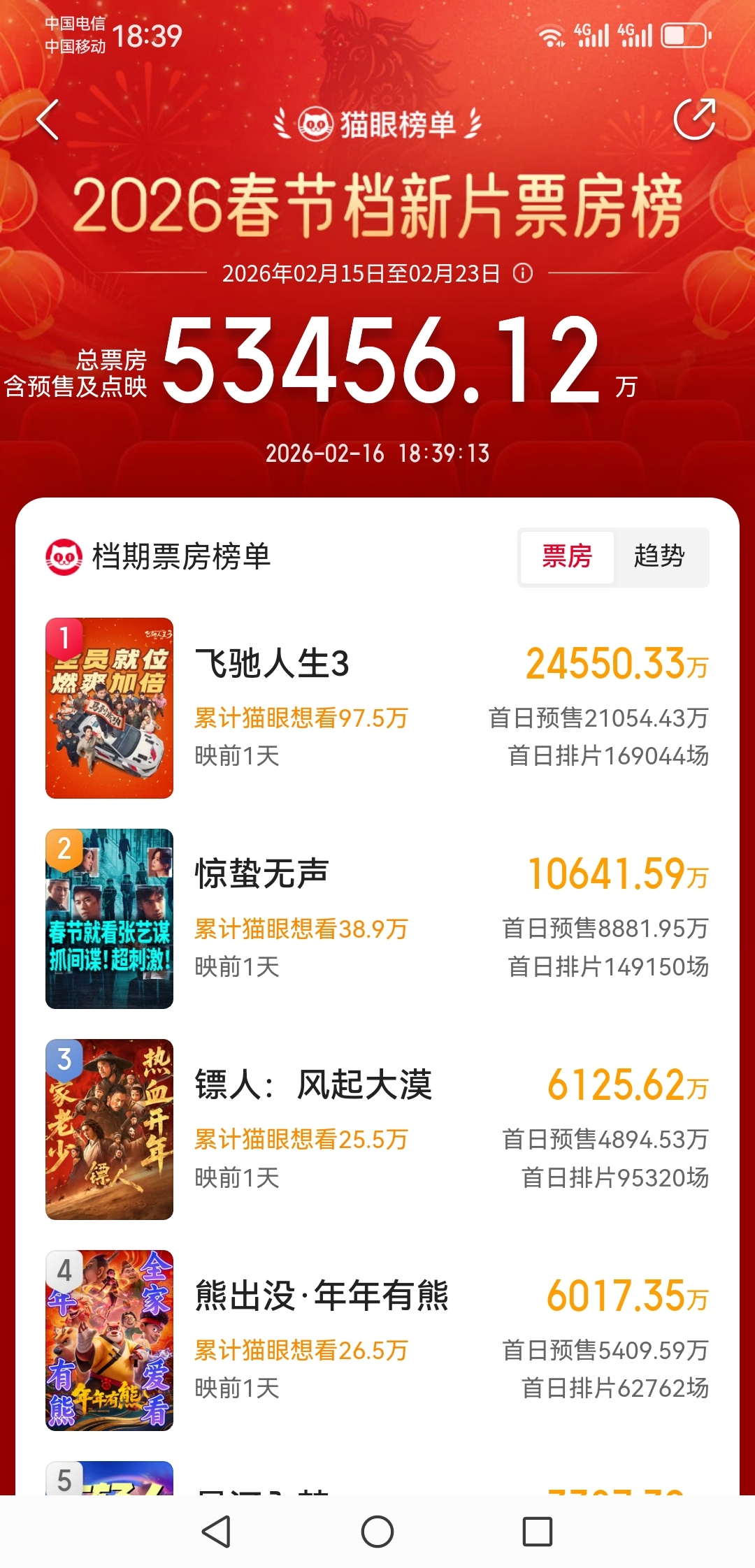 $博纳影业(SZ001330)$ 票房,,非,,飞驰人生3,,莫属。刚刚观察了下,一秒钟就,多1万。一分钟就是60万。