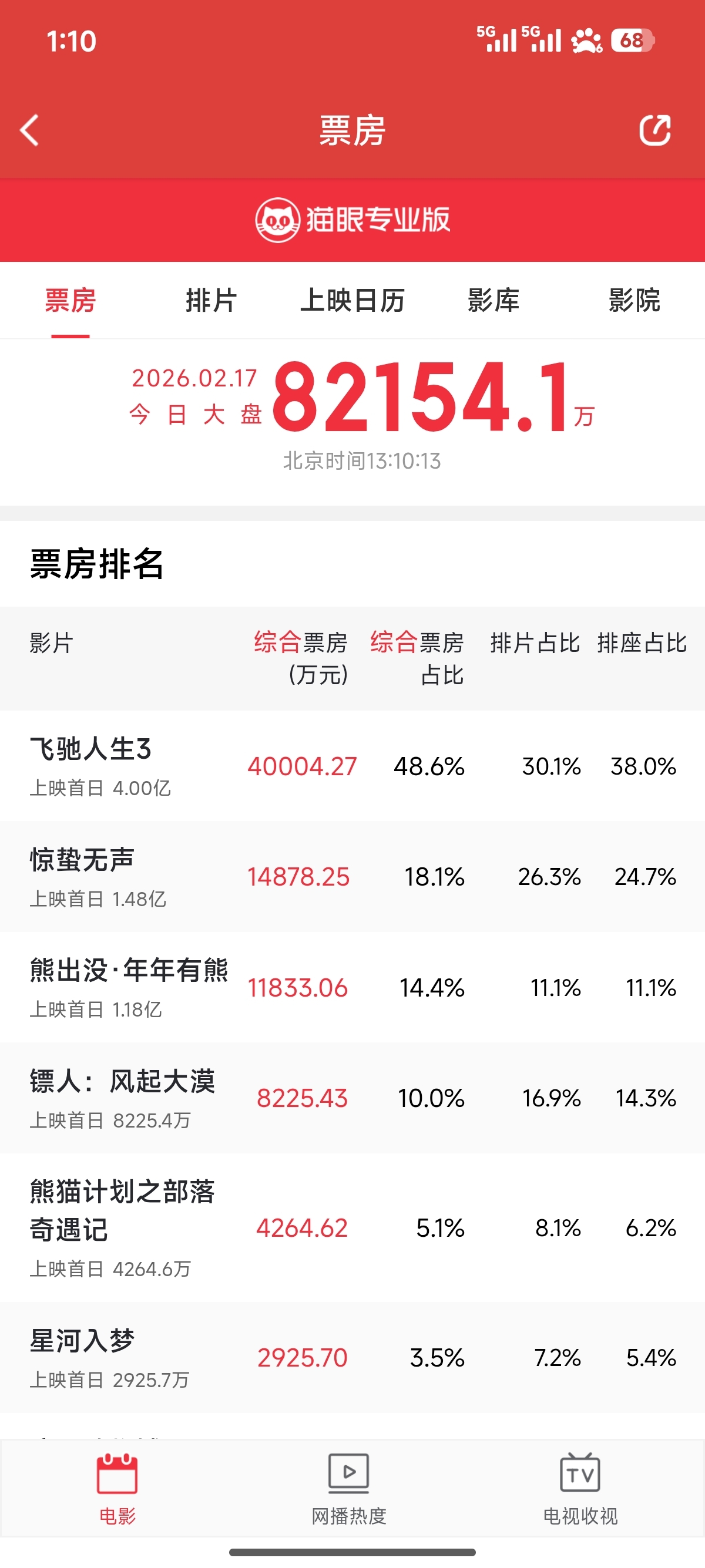 $博纳影业(SZ001330)$ 遥遥领先,没有一个能打的
