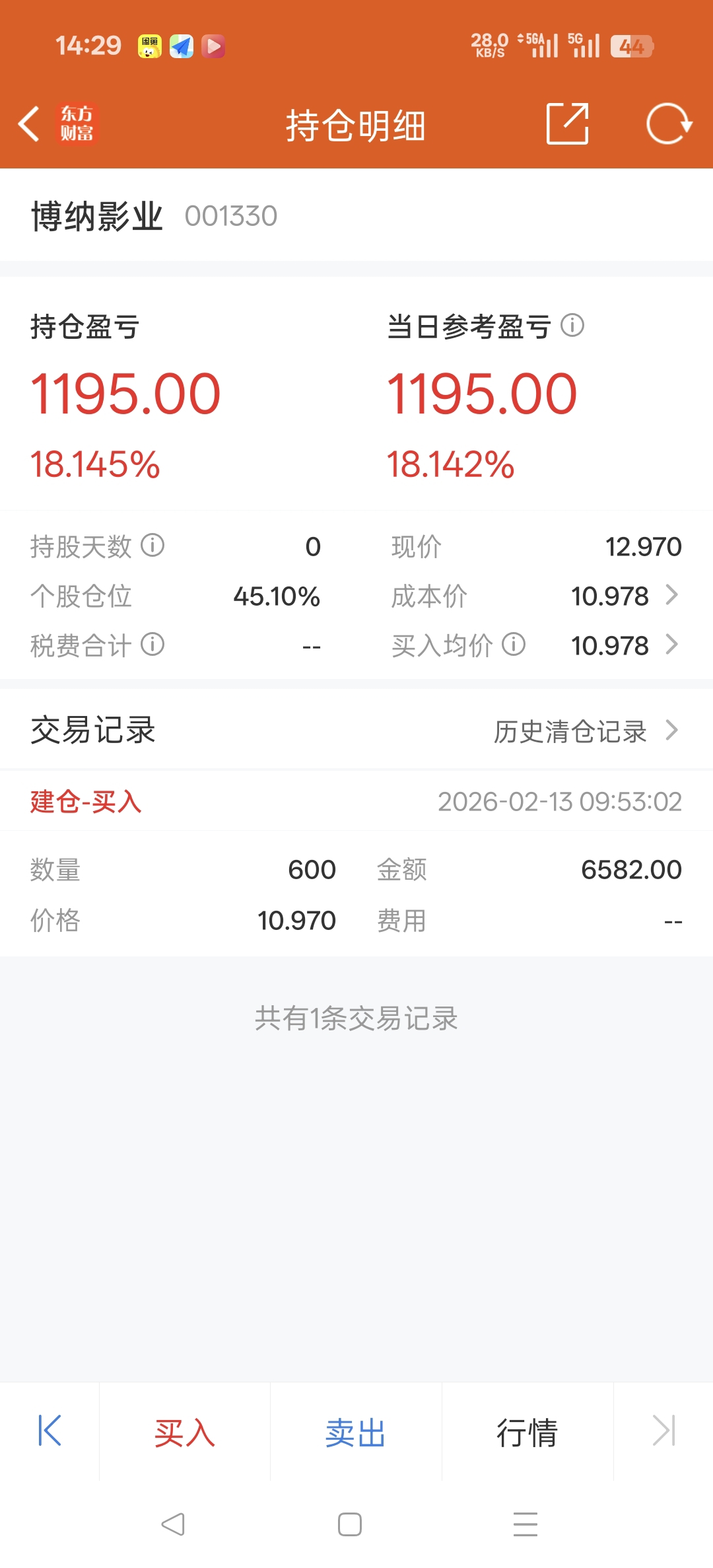 $博纳影业(SZ001330)$ 我才买了6手,不敢满仓