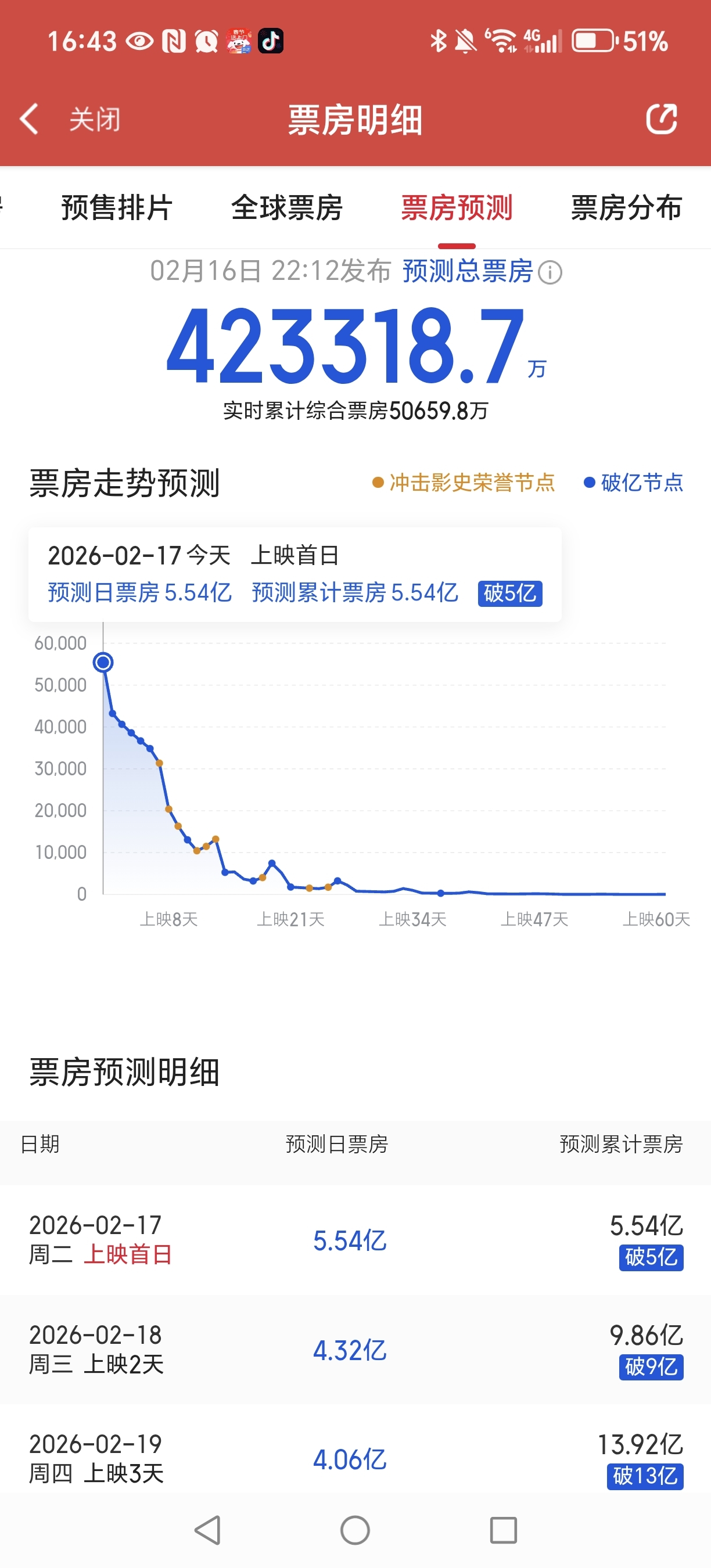 $博纳影业(SZ001330)$ 票房预测5.54亿,目前5亿,有望超预期达到6亿,还是可以期待一下的!
