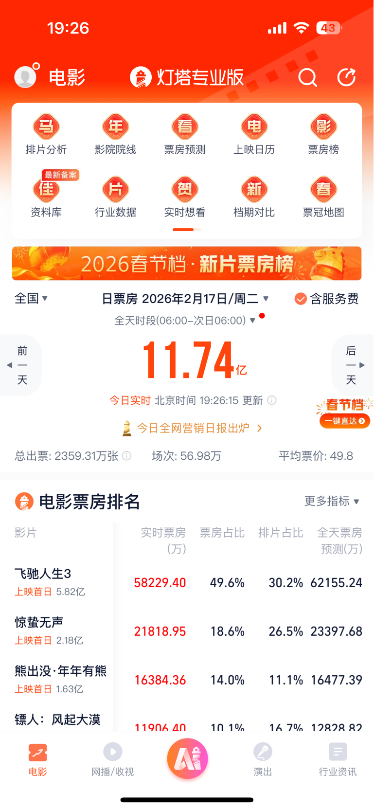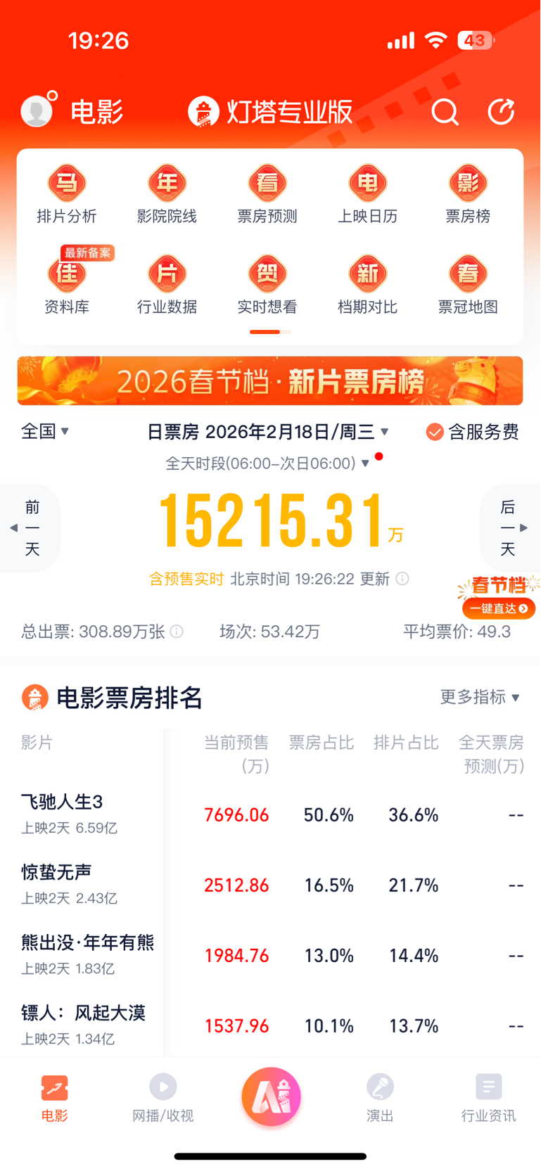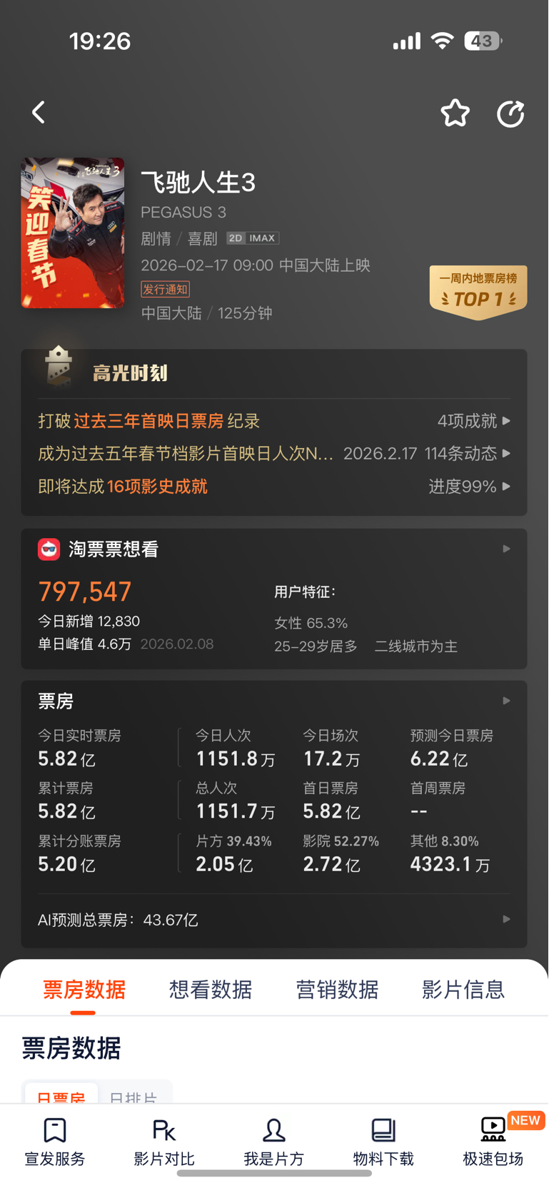 $博纳影业(SZ001330)$ 买股票的快叫人去买第二天的预售,快进行二刷三刷啊,飞驰人生2,票房33亿, 人生3 预期40亿,所以第一波拉升我参与了 ,第二波就没参与,参与第二波的要刷超预期了。当天ai预测6.2亿,总票房44亿,只能算符合预期(这还是不跳水的情况下),快叫人刷起来发财,而不是股吧炒,或者多去发切片。