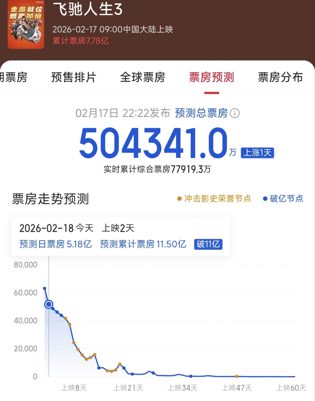最新票房预测比昨天上调了7万