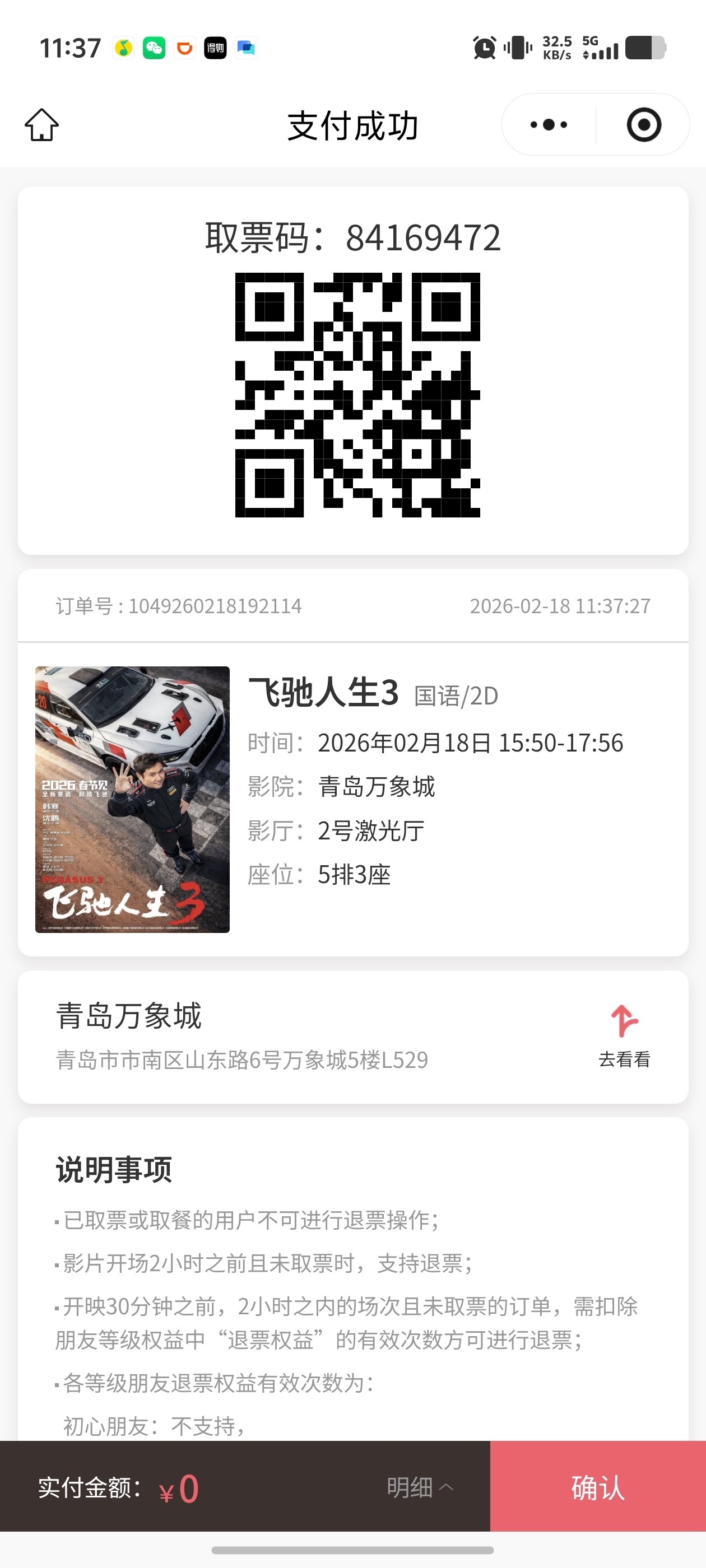 $博纳影业(SZ001330)$ 支持一张票,自己没时间去看,青岛有空的小伙伴可以去看