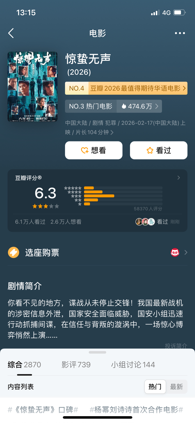 还没上映我就断定这个张拍的谍战是个腊即票,大过年的,谁看这玩意,预售全靠几个明星