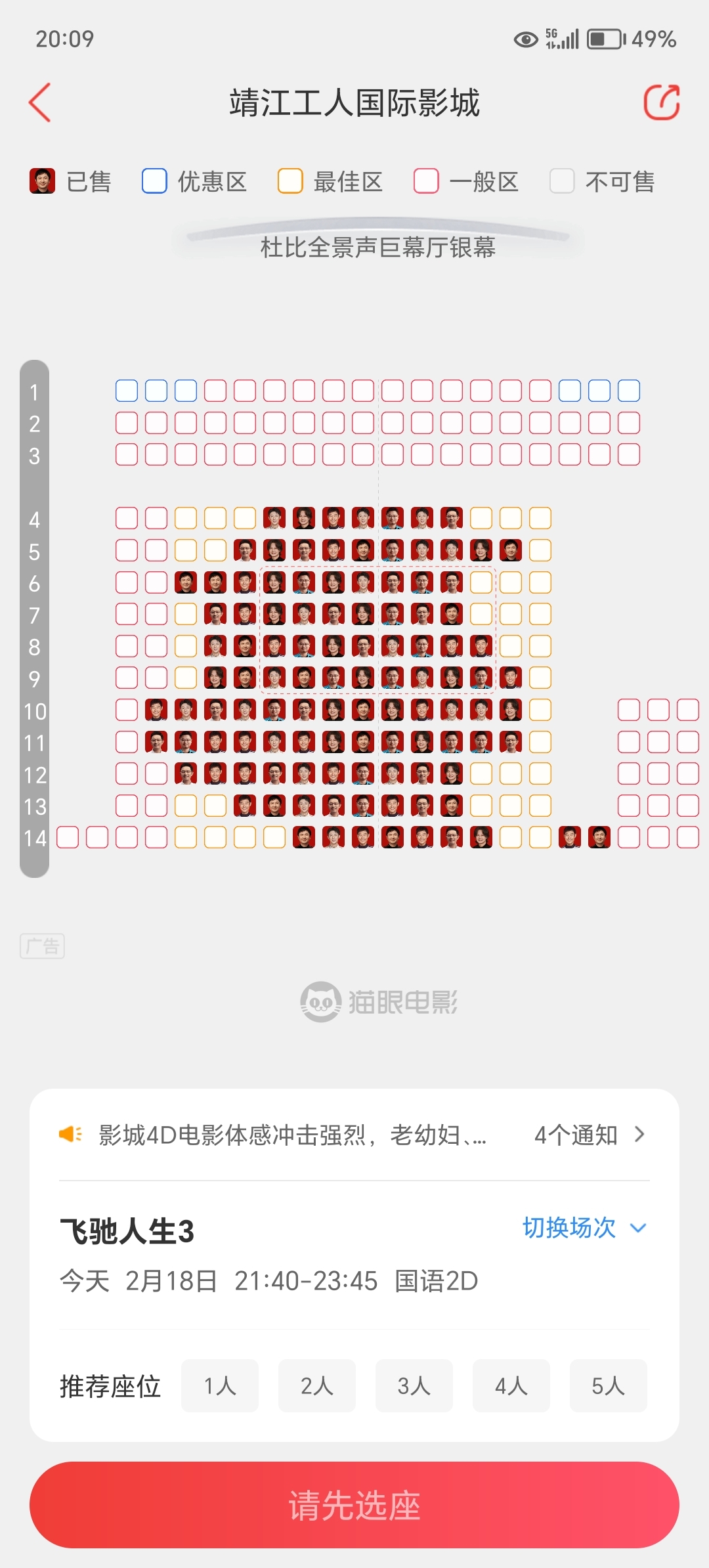 $博纳影业(SZ001330)$ 县城电影院21点多的上座率相当不错了