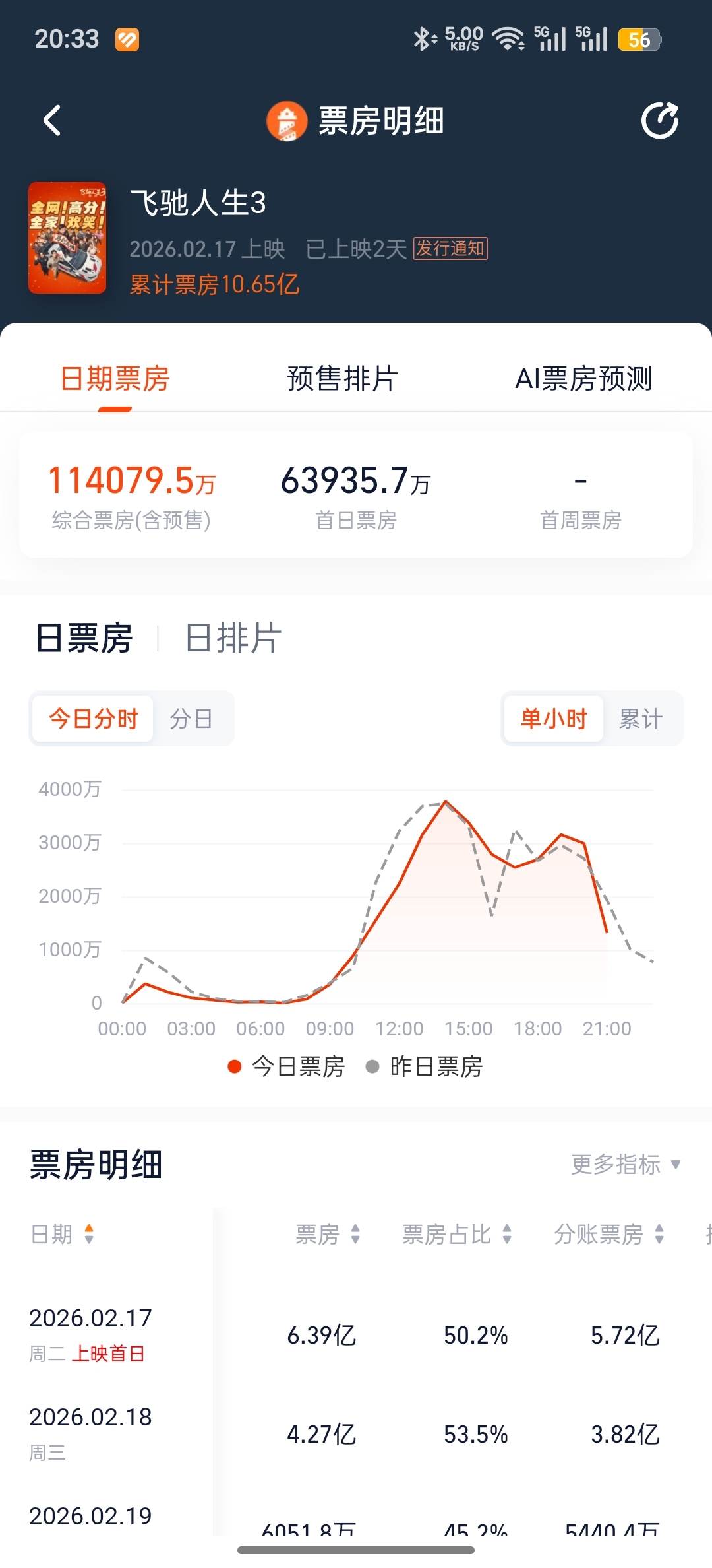 今天和昨天当天买出的票差不多,就是昨天预售有两亿