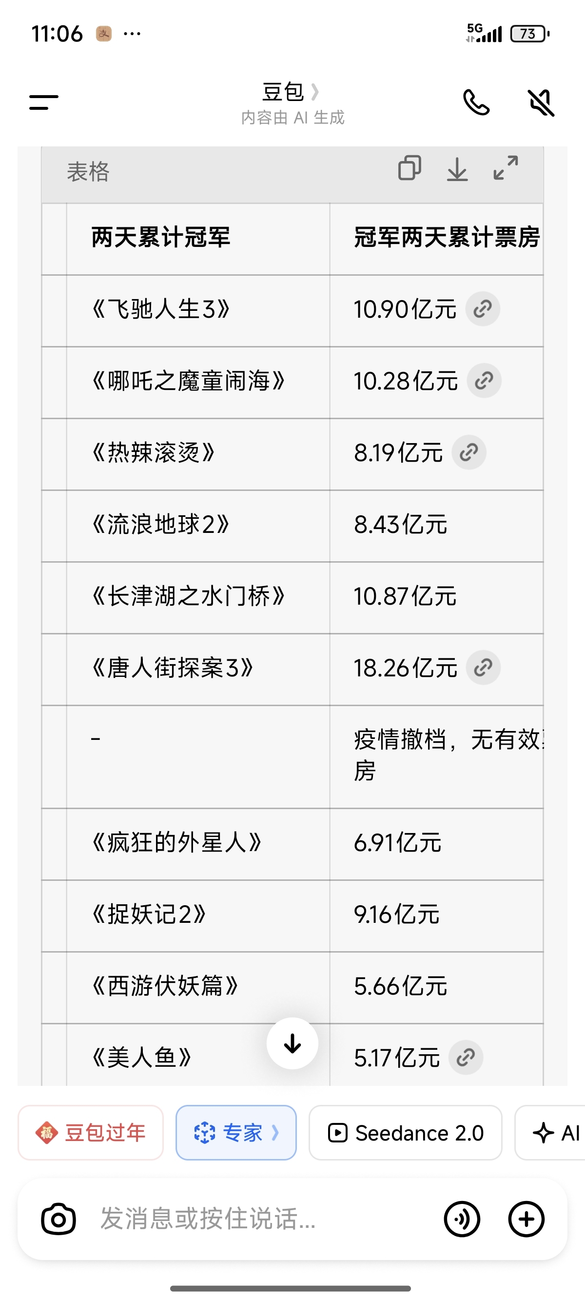 $博纳影业(SZ001330)$ 历年前两天票房冠军