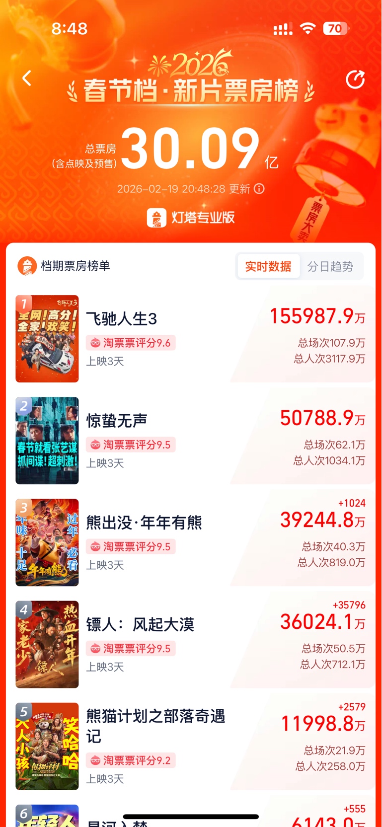 $博纳影业(SZ001330)$ 唱空的还有啥意义呢,3天还没过,已经快16亿了,一个吊打其他全部加起来。