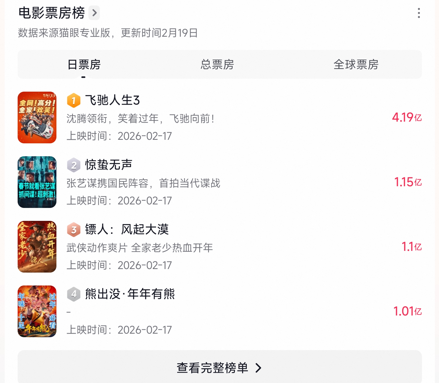 $博纳影业(SZ001330)$ 绝了,第一天是第二的三倍,第二天也是三倍,第三天是第二的四倍,断档领先。