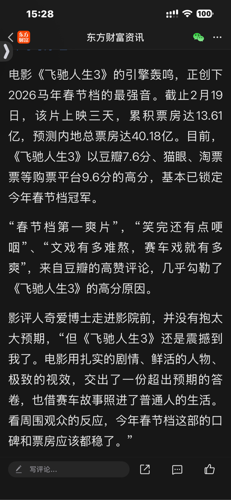 $博纳影业(SZ001330)$ 完美,飞驰人生