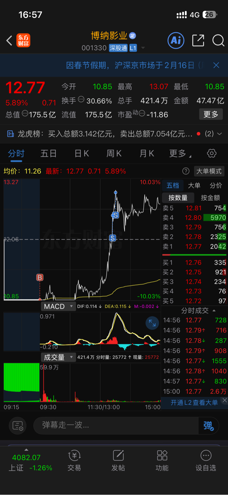 $博纳影业(SZ001330)$ 低开更好,反正超预期了,高位T出去的筹码还是要加回的,还有个底仓