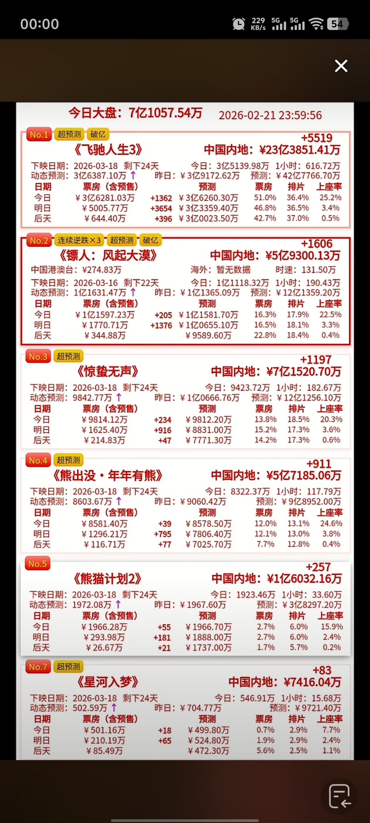 $博纳影业(SZ001330)$ 五天23.38亿开盘还有二个交易日还差6.62到30亿小目标初七大概29.5-30亿后面还有22天还有海外票房上60亿都有希望