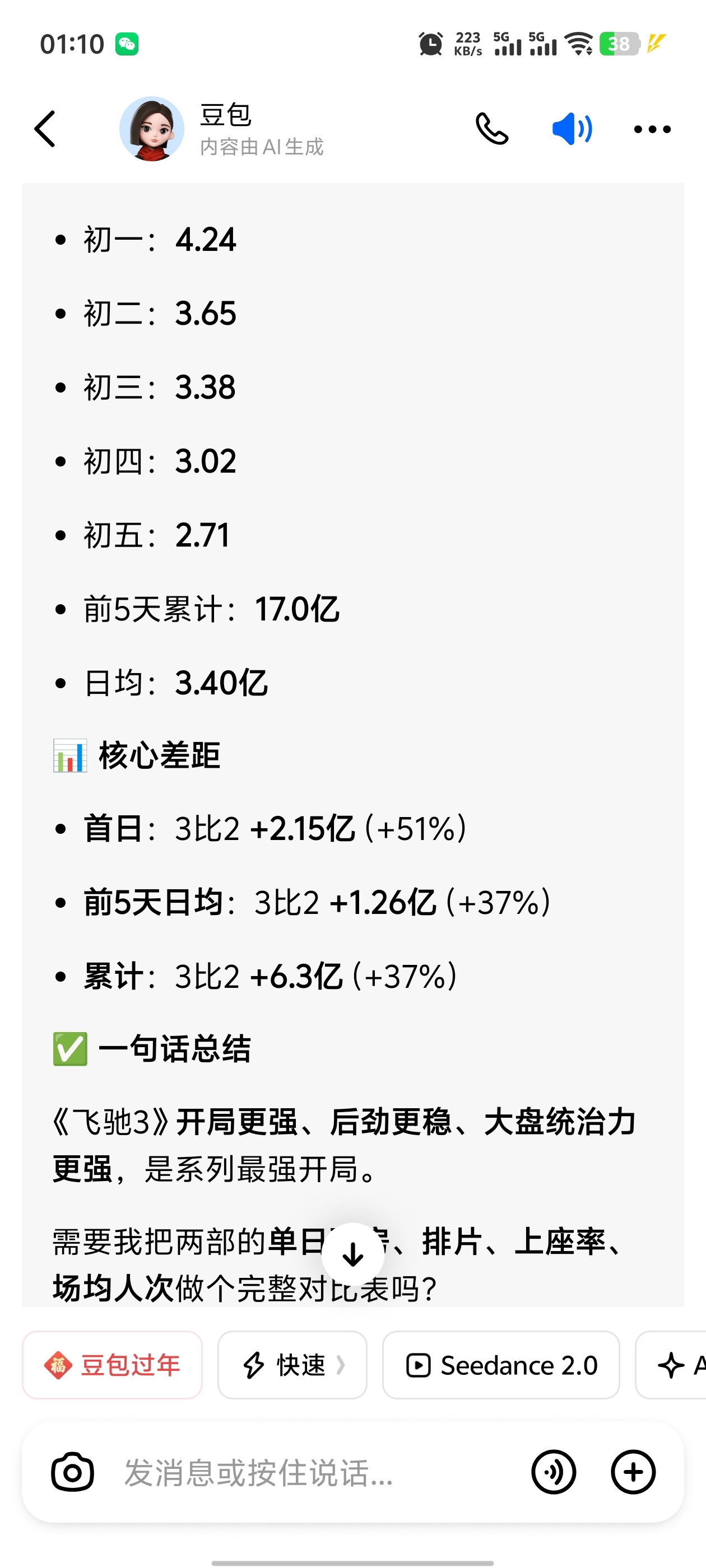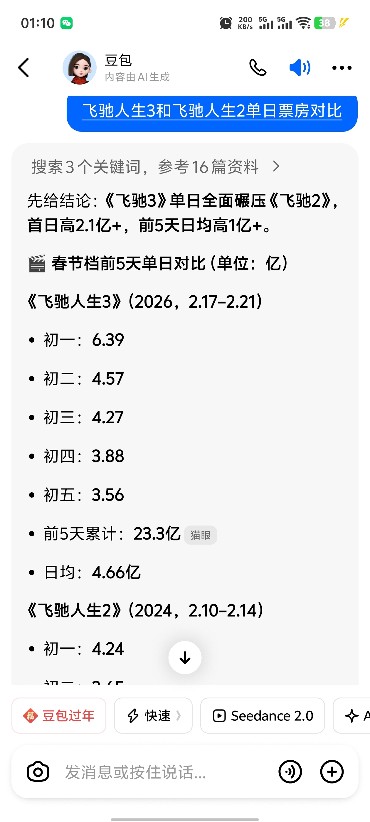 飞驰3领先飞驰2三十多个点飞驰2最终拿了34亿票房。