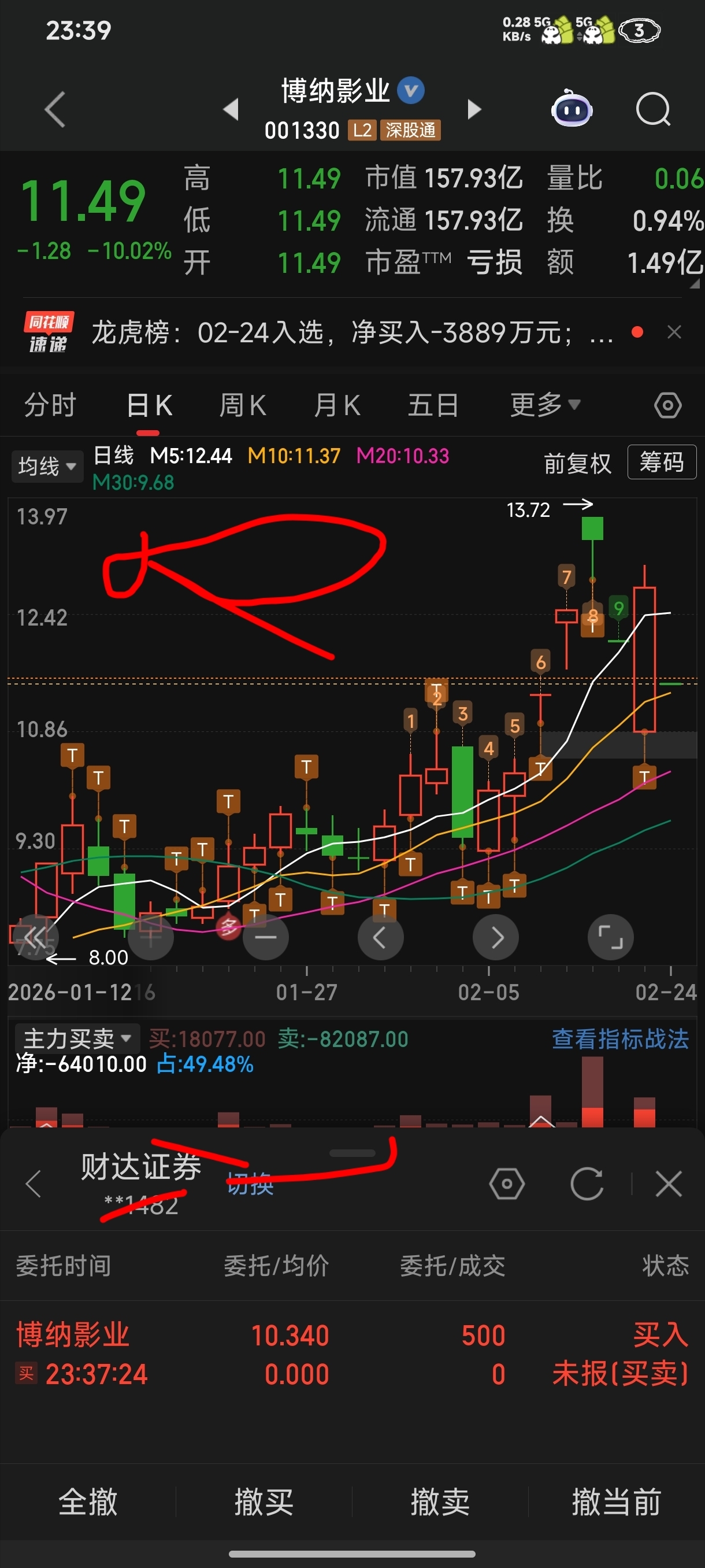 $博纳影业(SZ001330)$ 买五手试试水温