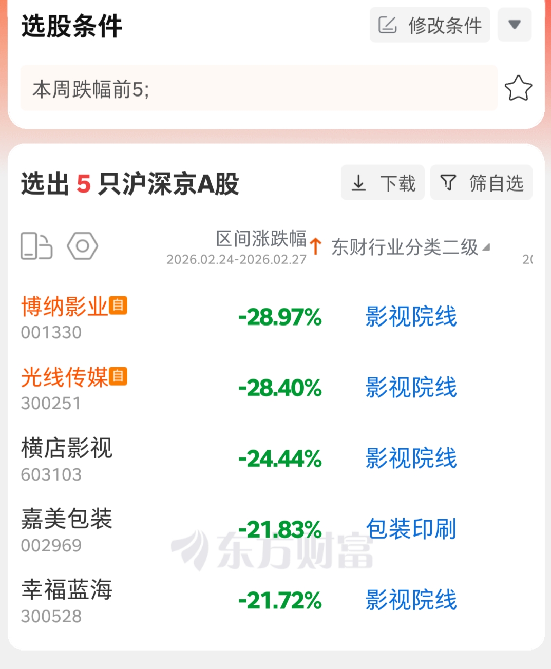 $博纳影业(SZ001330)$ $光线传媒(SZ300251)$ 遥遥领跌全市5489只股,年后第一名