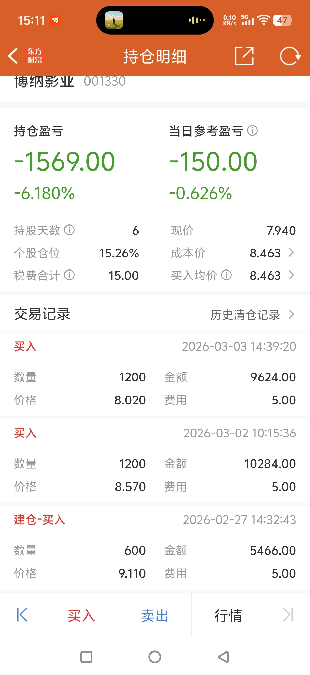 $博纳影业(SZ001330)$ 主力我错了,用的最稳妥的逐步介入法都被套了6个点了