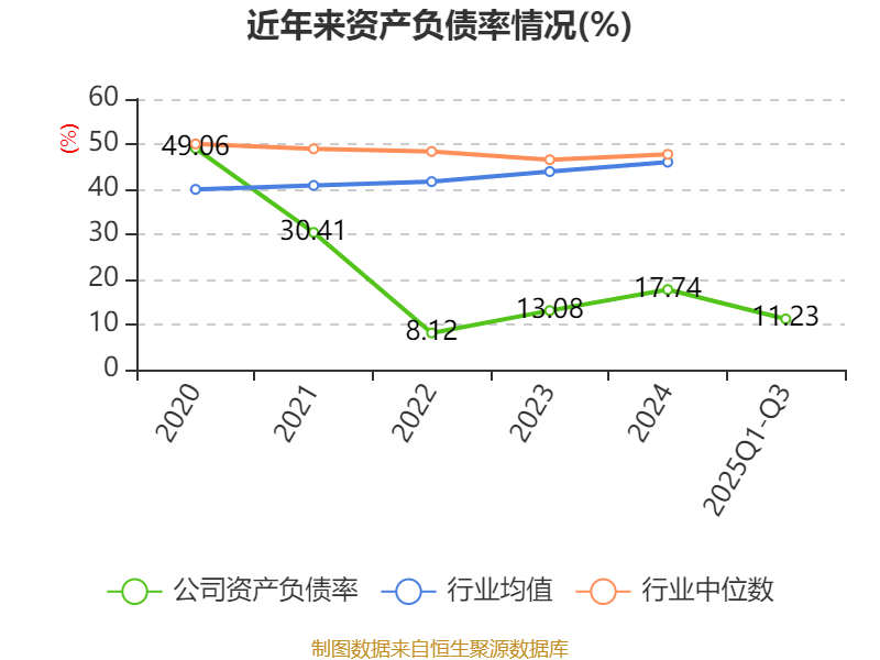 2025年前三季度,公司流动比率为8.28,速动比率为8.25。