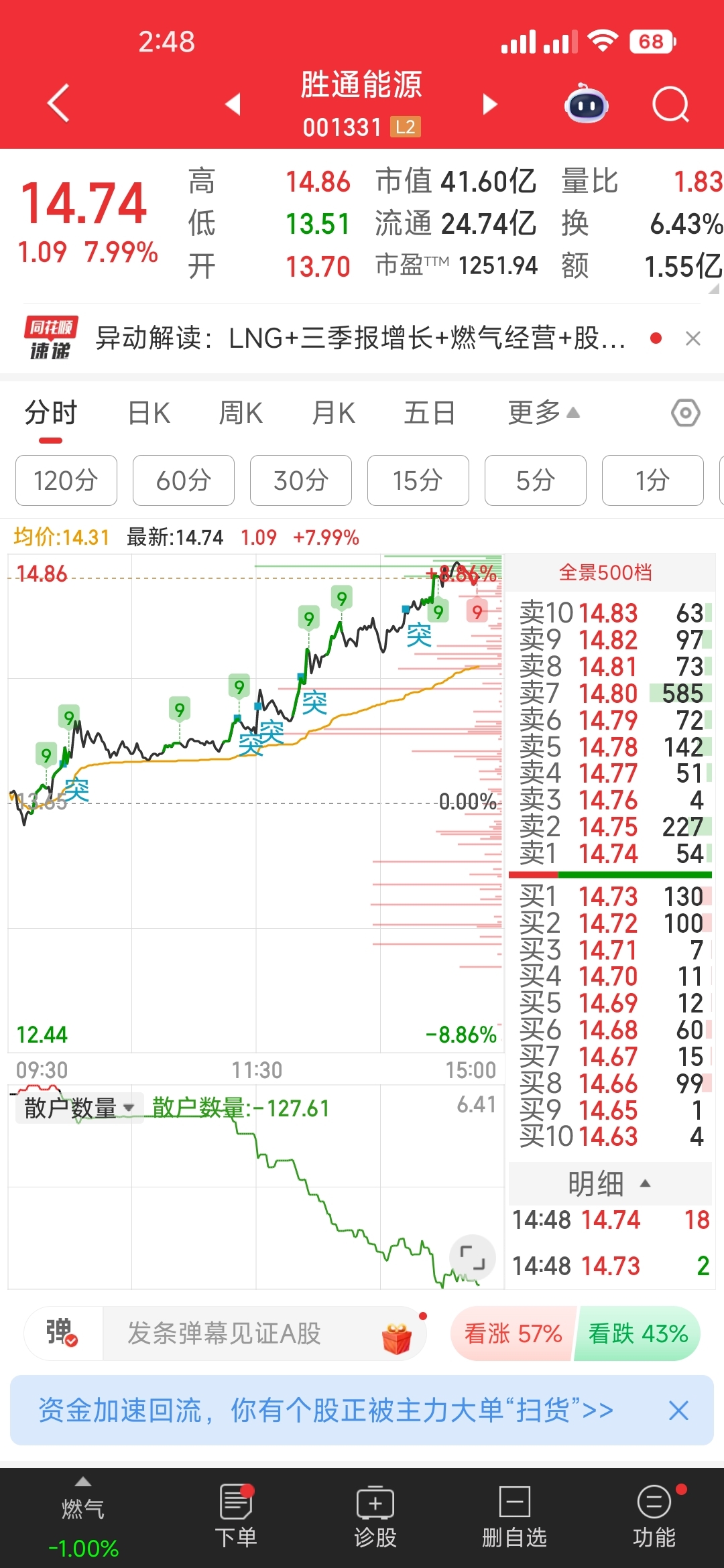 $胜通能源(SZ001331)$ 散户大幅流出,拿好了!