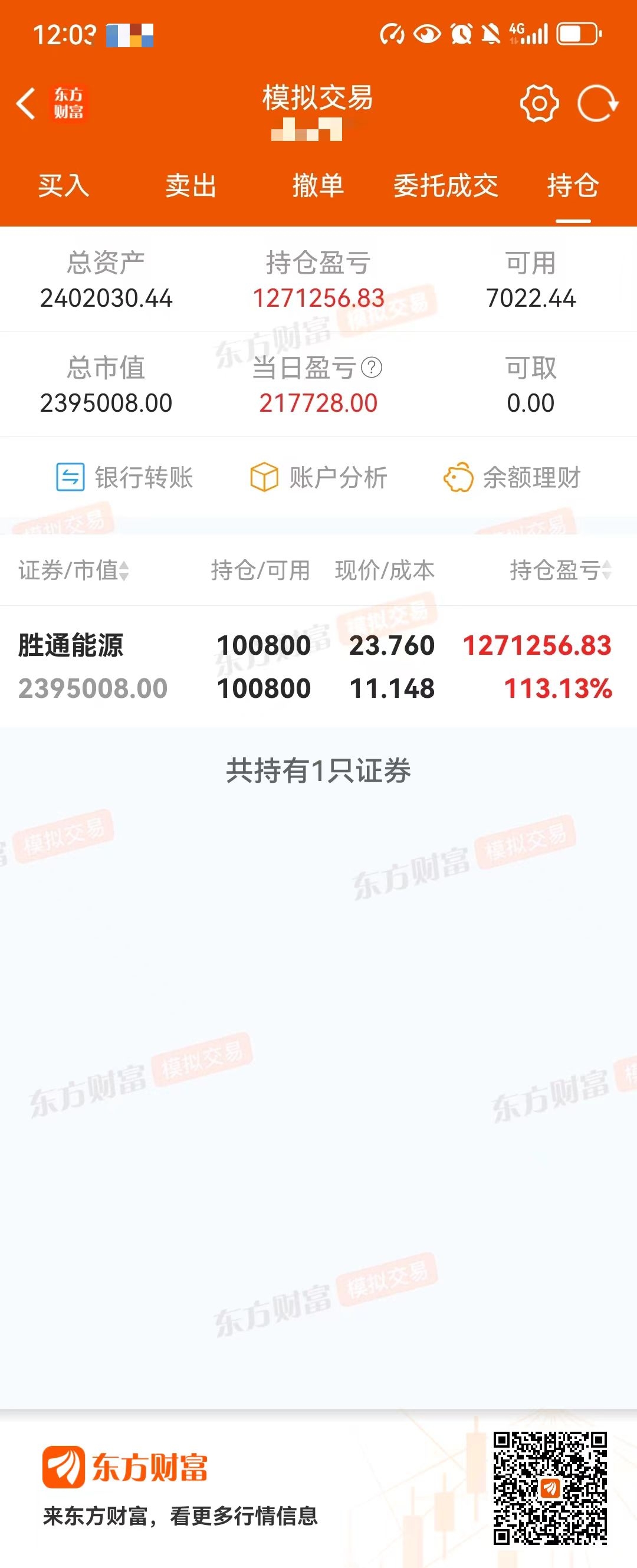 $胜通能源(SZ001331)$ 可惜买的只是模拟仓,要不这够我吹牛很长一阵子。