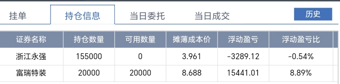 牛股$胜通能源(SZ001331)$已经九连板,昨天买的$富瑞特装(SZ300228)$ 不错,只不过今天卖飞了不少筹码,目前只有两万股,今天买入的$浙江永强(SZ002489)$ 成本有点高,再杀跌就继续买进。至于中签新股确实是多做善事才有善报,浙江永强股吧里黑粉们最终肯定没有好结局。