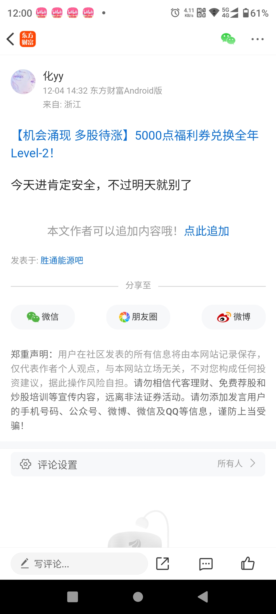 温馨提示: 1.根据《证券法》规定,禁止编造、传播虚假信息或者误导性信息,扰乱证券市场;2.用户在本社区发表的所有资料、言论等仅代表个人观点,与本网站立场无关,不对您构成任何投资建议。用户应基于自己的独立判断,自行决定证券投资并承担相应风险。《东方财富社区管理规定》