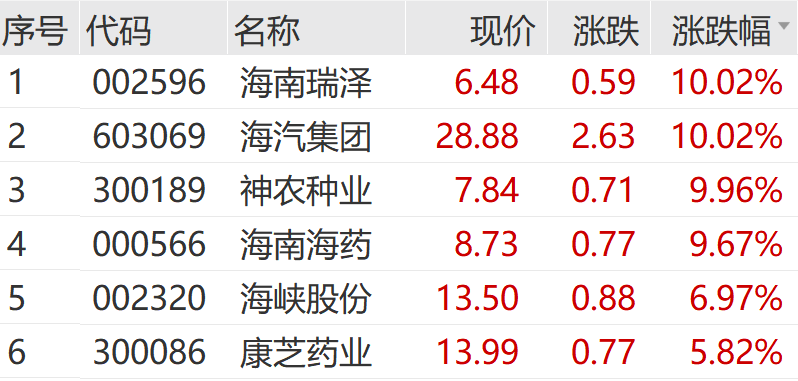 12月23日上午,海南自贸港概念股持续活跃,海南瑞泽、海汽集团3连板,海南海药接近涨停。