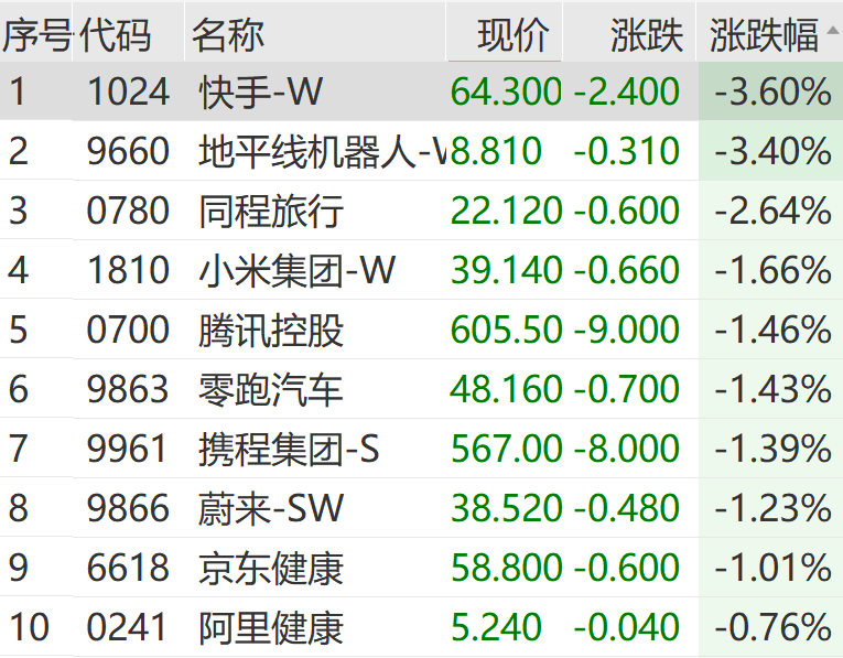 港股市场盘中反复震荡,截至午间收盘,恒生指数涨0.18%,恒生科技指数跌0.42%;快手跌3.6%,领跌恒生科技指数成份股。