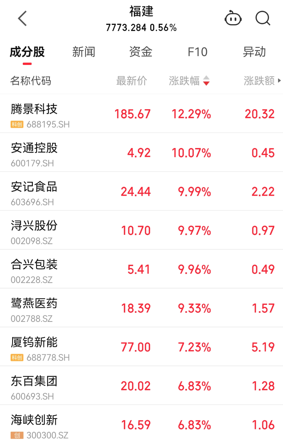 福建板块盘中走高,安通控股、安记食品、浔兴股份等多股涨停。