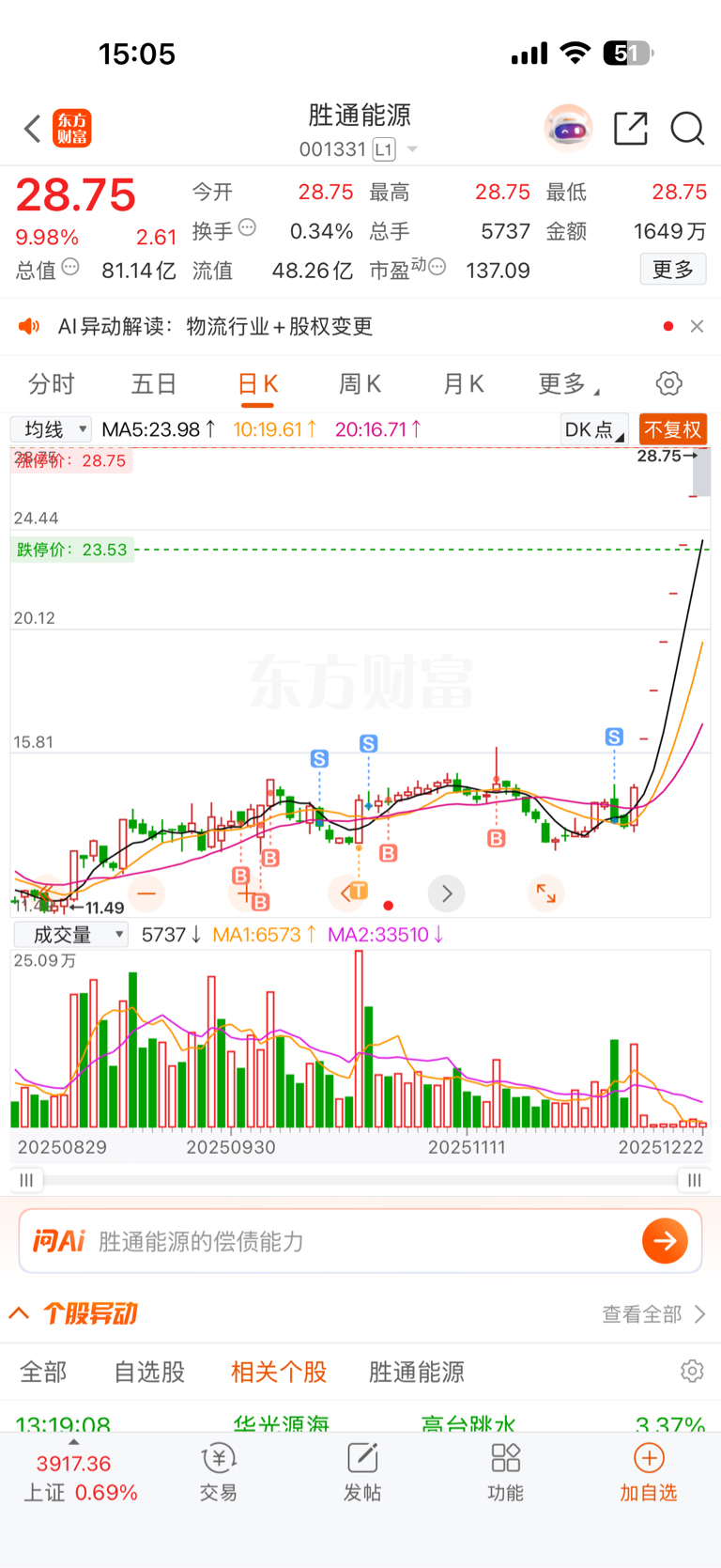 $胜通能源(SZ001331)$ 卖在黎明前 不玩了退了,祝兄弟们发财