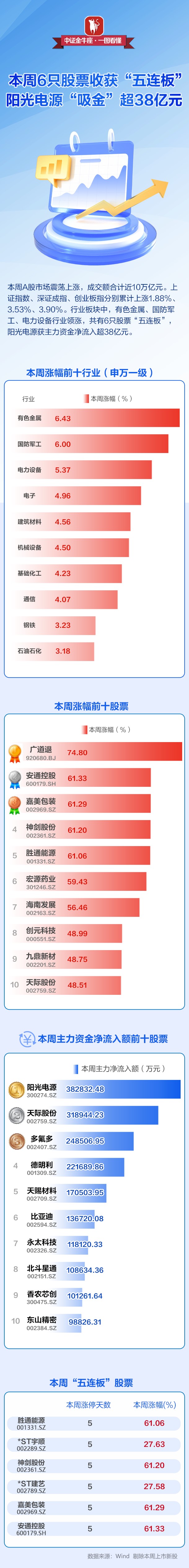【一图看懂】本周,6只牛股收获“五连板”