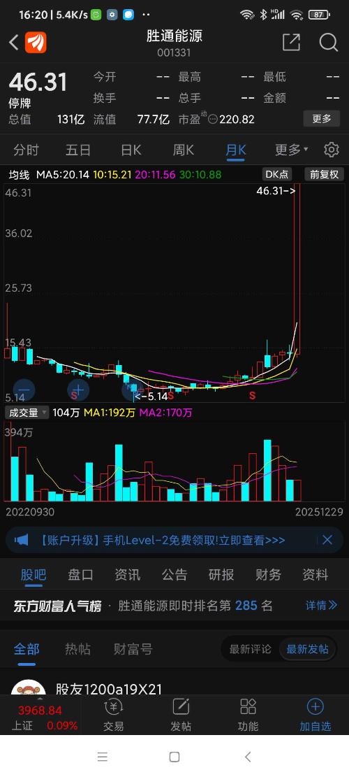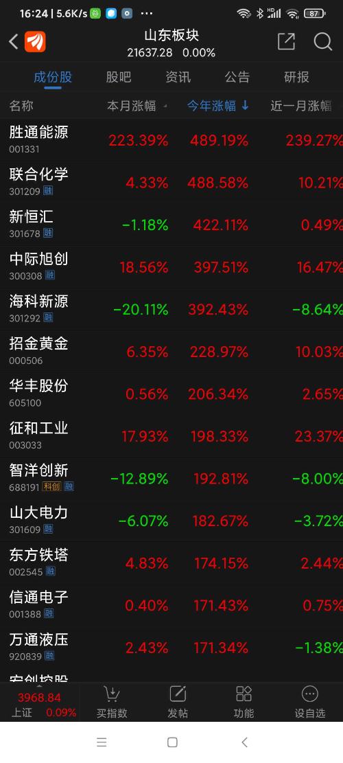 胜通能源(山东烟台龙口市),25年山东板块(共有310个股票)涨幅第一名。