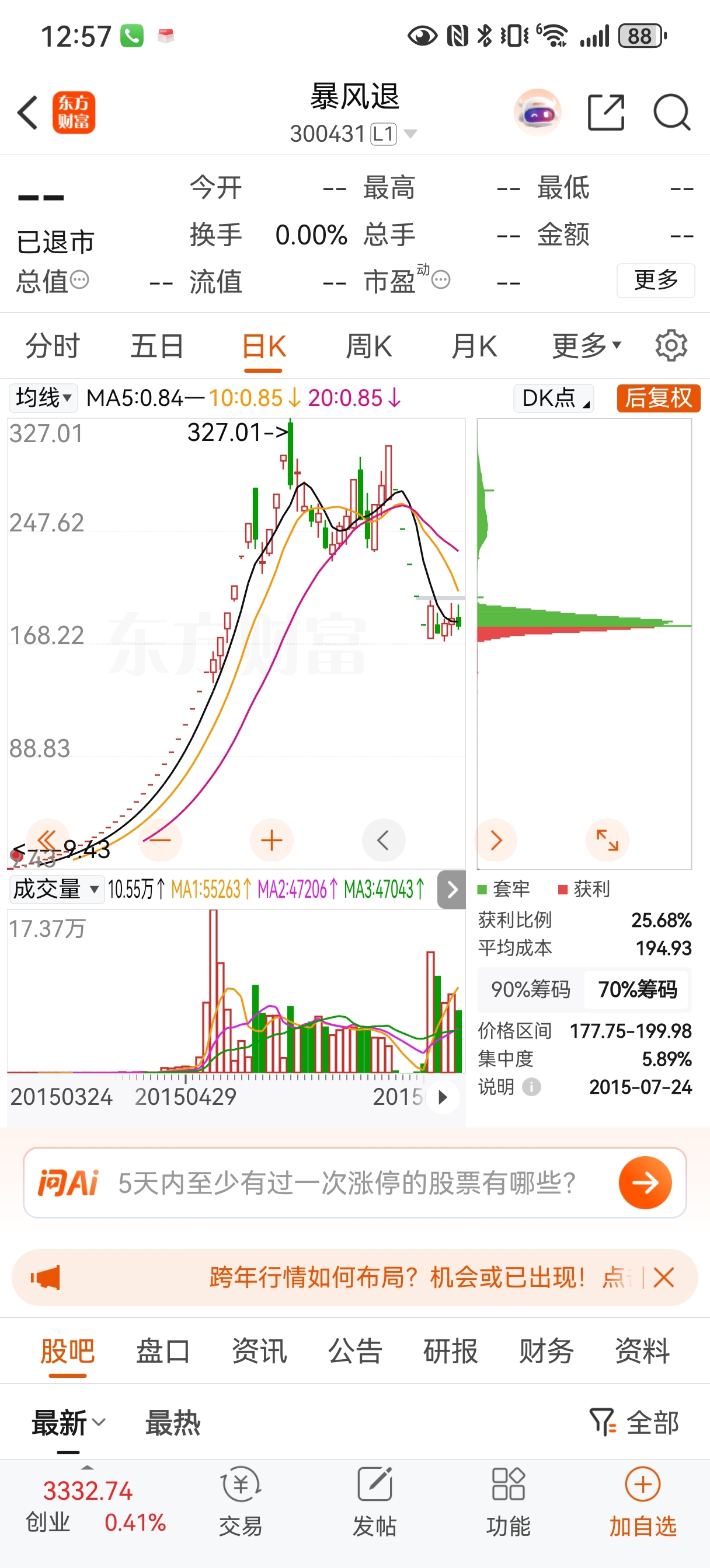 $胜通能源(SZ001331)$ 看看暴风影音上市的时候,从9元钱到148,再到340。