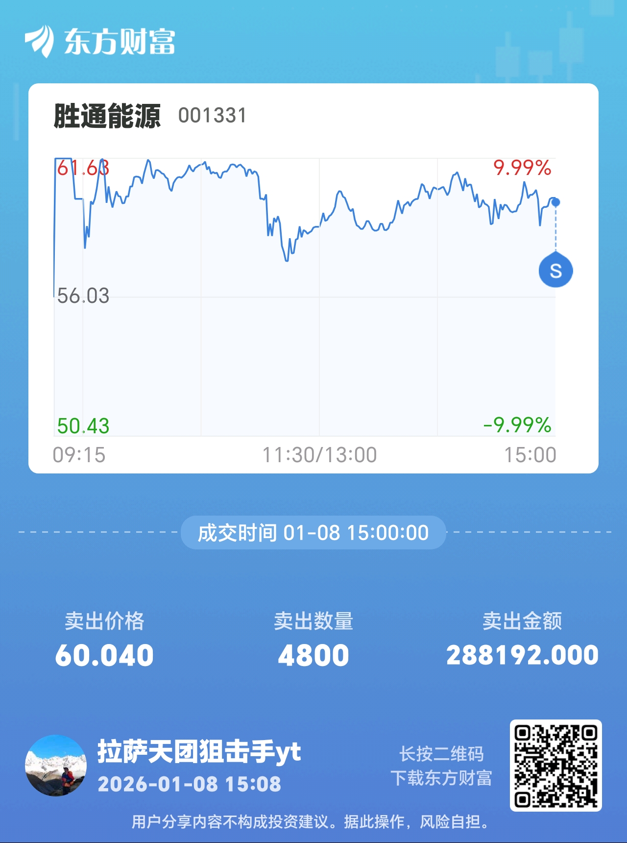 温馨提示: 1.根据《证券法》规定,禁止编造、传播虚假信息或者误导性信息,扰乱证券市场;2.用户在本社区发表的所有资料、言论等仅代表个人观点,与本网站立场无关,不对您构成任何投资建议。用户应基于自己的独立判断,自行决定证券投资并承担相应风险。《东方财富社区管理规定》