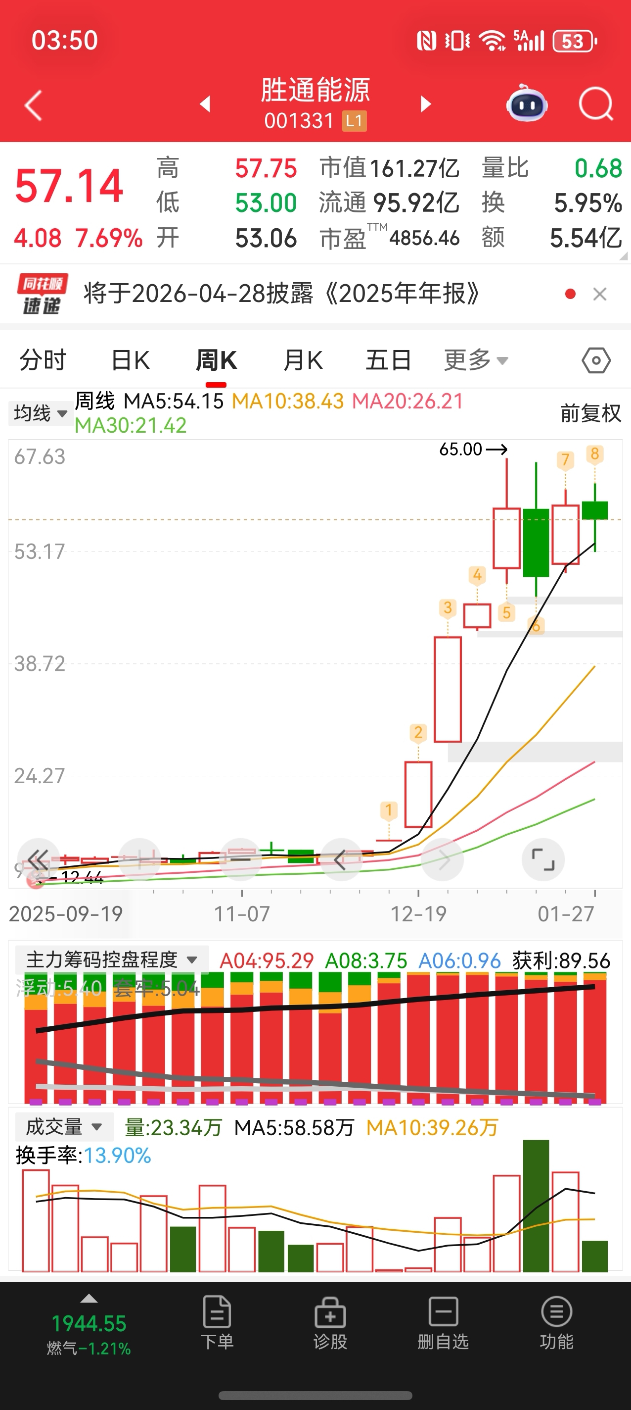 $胜通能源(SZ001331)$ 周线上升第八转,行情一般会九转走完。本周没问题,下周需要高于58.55元,看主力怎么震仓。