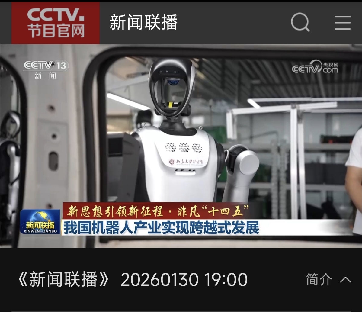 $胜通能源(SZ001331)$ 1月30日,新闻联播,机器人产业重点报道