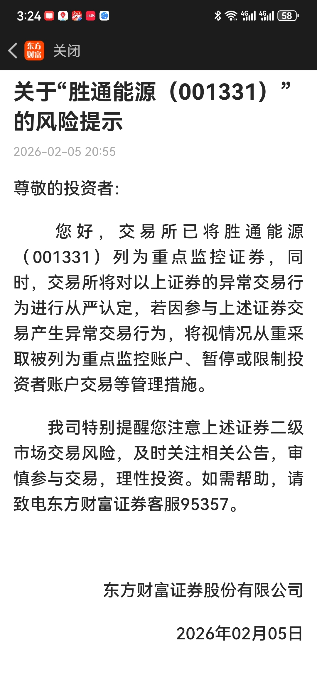 $胜通能源(SZ001331)$ 一涨就监管啊!