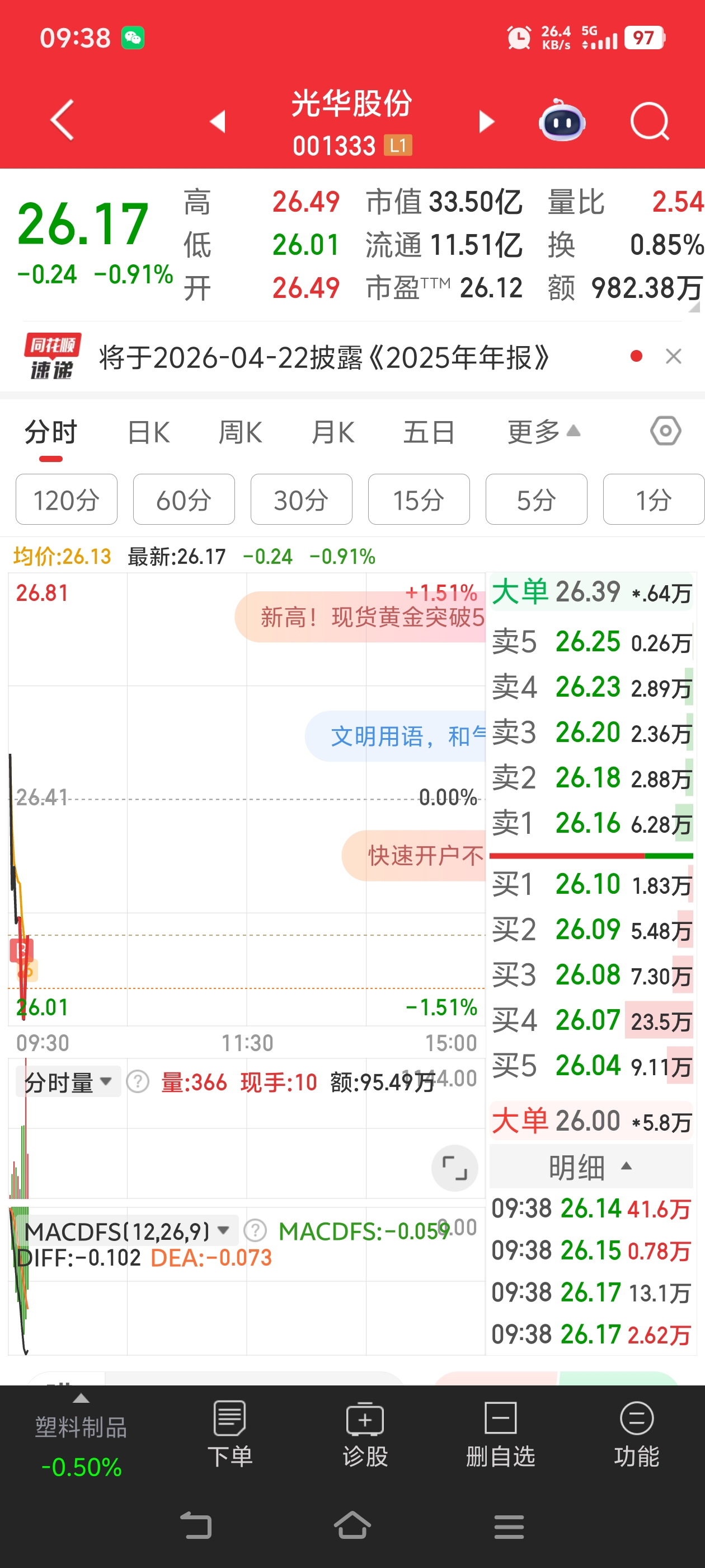 $光华股份(SZ001333)$ 抄底了