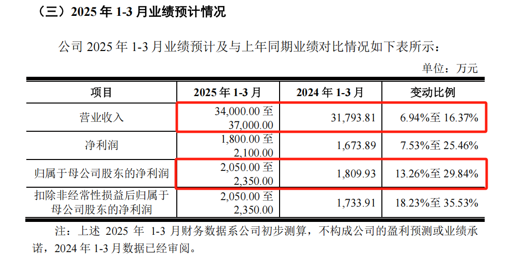 信凯科技管理层预测,公司2025年第一季度的营业收入为3.4亿元至3.7亿元,同比变动比例为6.94%至16.37%;归母净利润为2050万元至2350万元,同比变动比例为13.26%至29.84%。