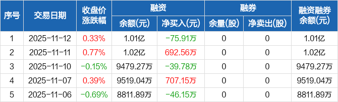 信凯科技:融资净偿还75.91万元,融资余额1.01亿元(11-12)
