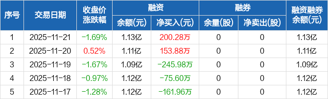 信凯科技:融资净买入200.28万元,融资余额1.13亿元(11-21)
