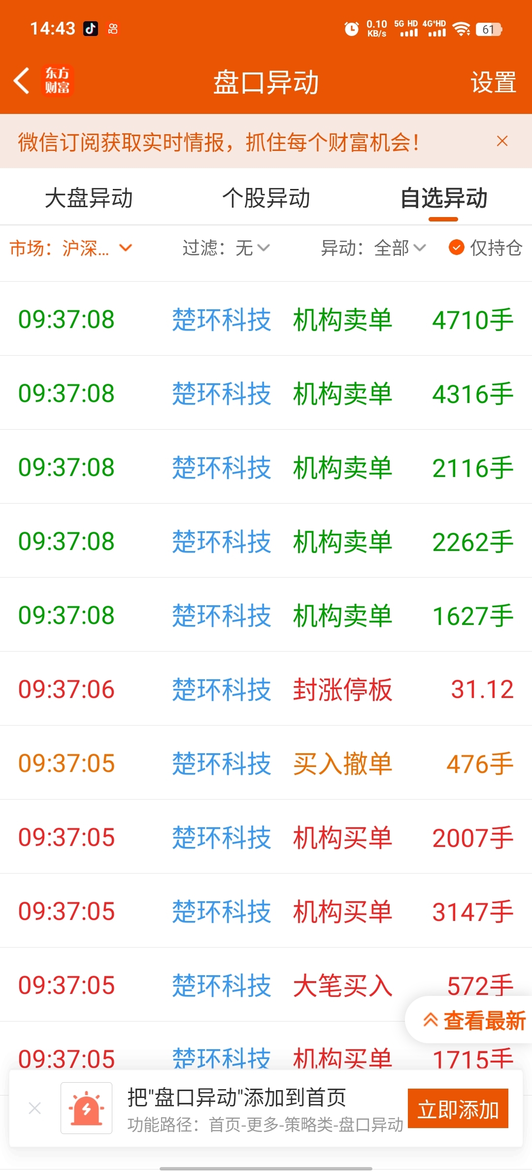 $楚环科技(SZ001336)$ 大家都举报。机构量化