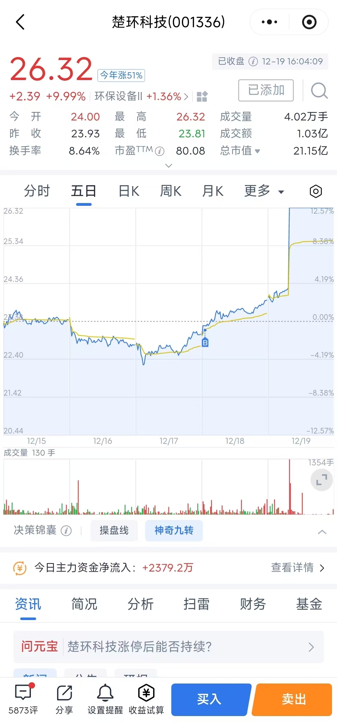 $楚环科技(SZ001336)$ 怎么就莫名其妙就涨停了?