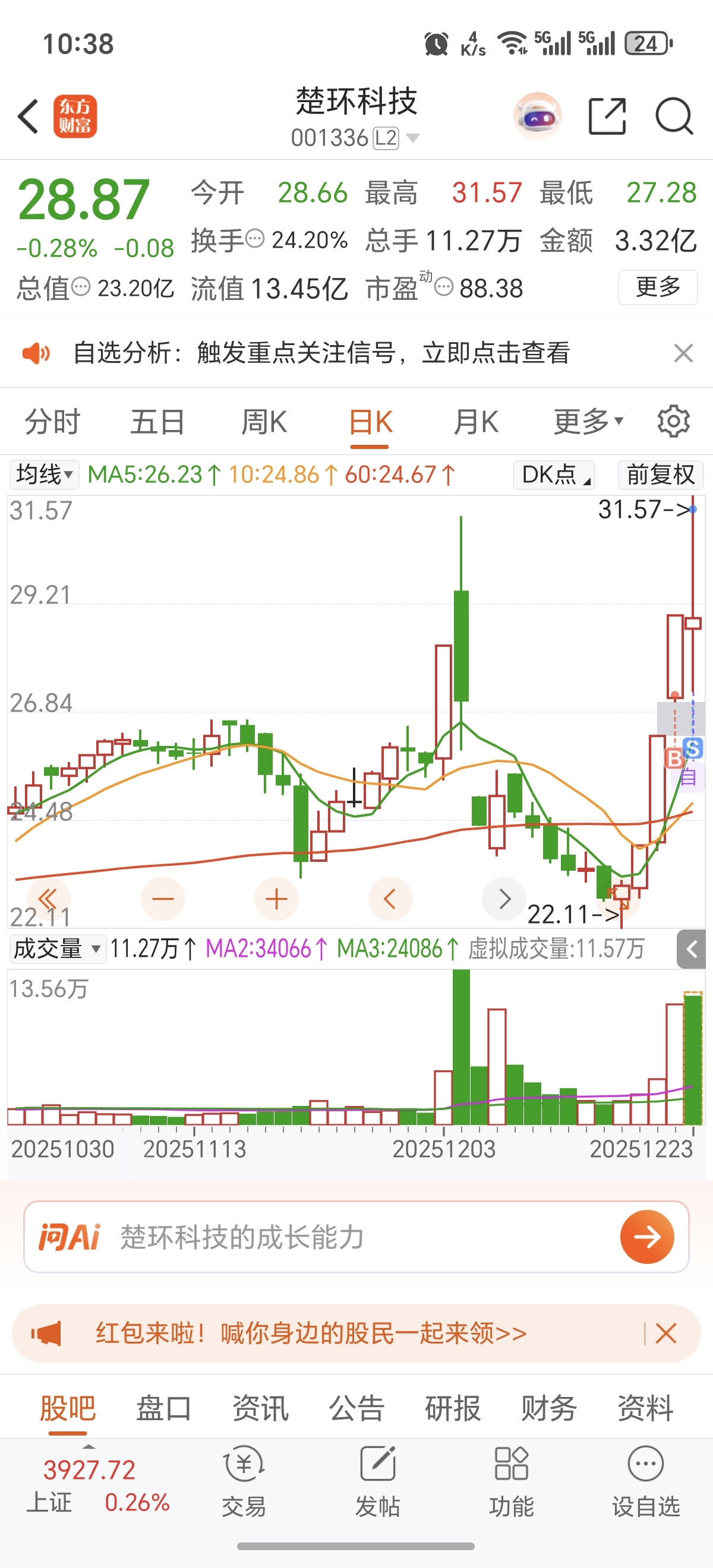 $楚环科技(SZ001336)$ 哪个超短正常人受得了这种波动率?