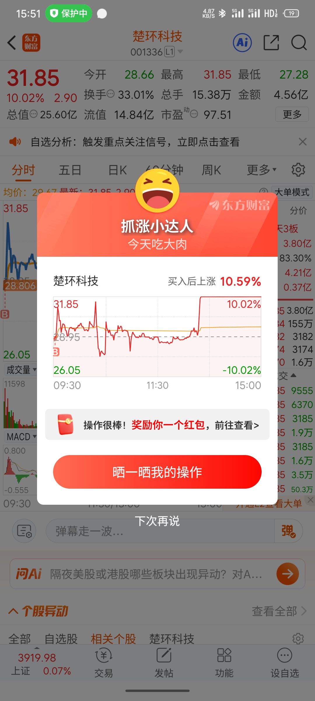 $楚环科技(SZ001336)$ 明天能活着出来么?