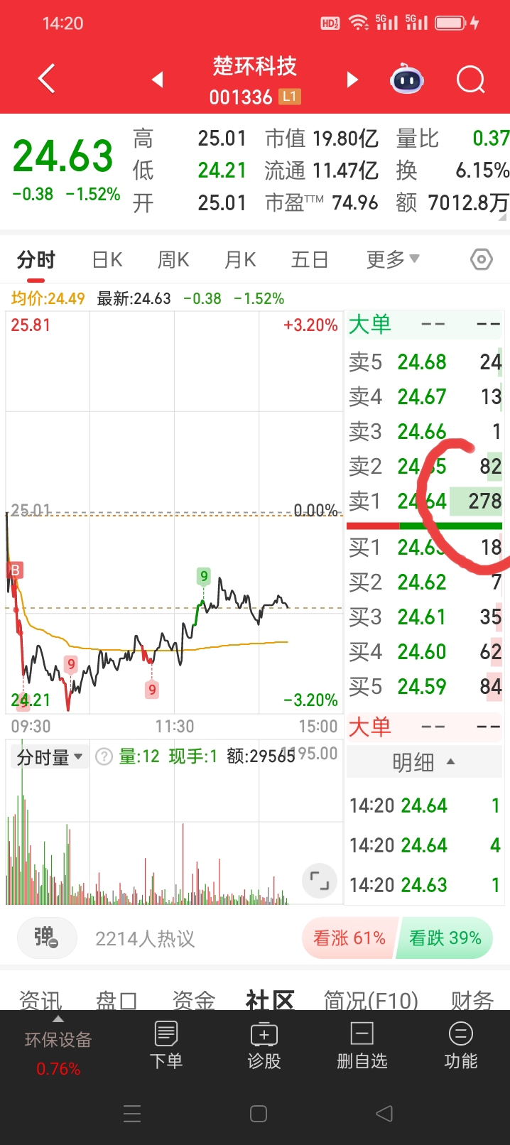 $楚环科技(SZ001336)$ 老是有这种几百手的中东来砸盘