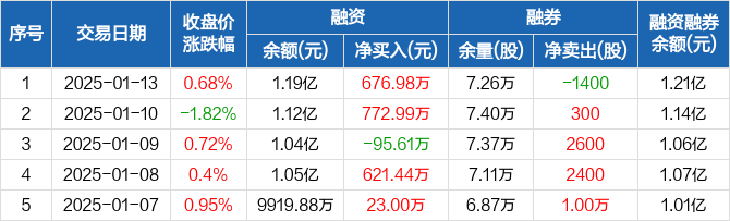 四川黄金:融资净买入676.98万元,融资余额1.19亿元(01-13)