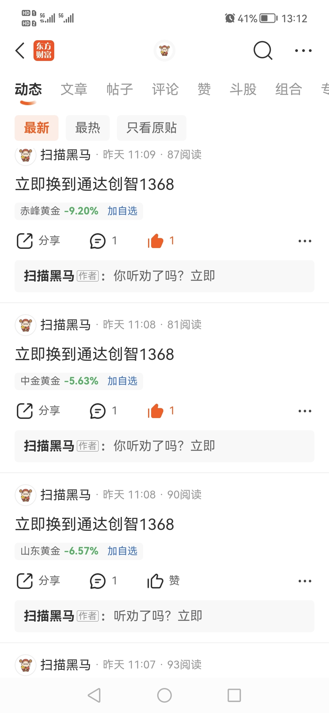$四川黄金(SZ001337)$ 立即扫盘吃进通达创智1368要上牛吧