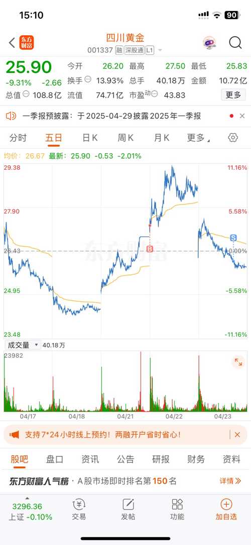 $四川黄金(SZ001337)$  明天竞价3层仓位买入#炒股日记#