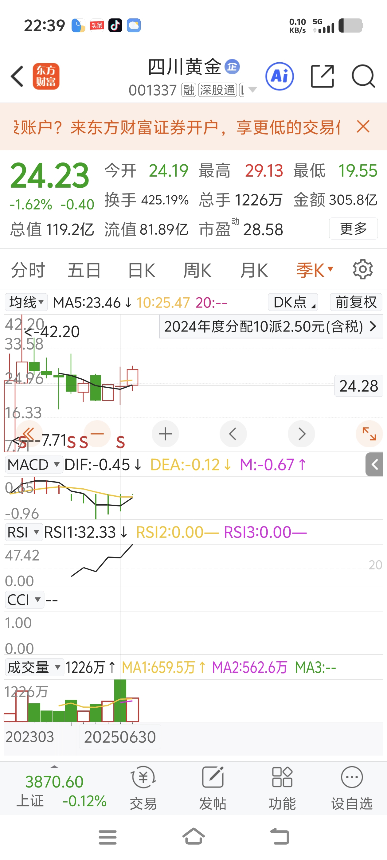理由一,疫情后这波世界黄金牛市已经几年了,四川黄金的股价看季K线却还在底部,这不科学;