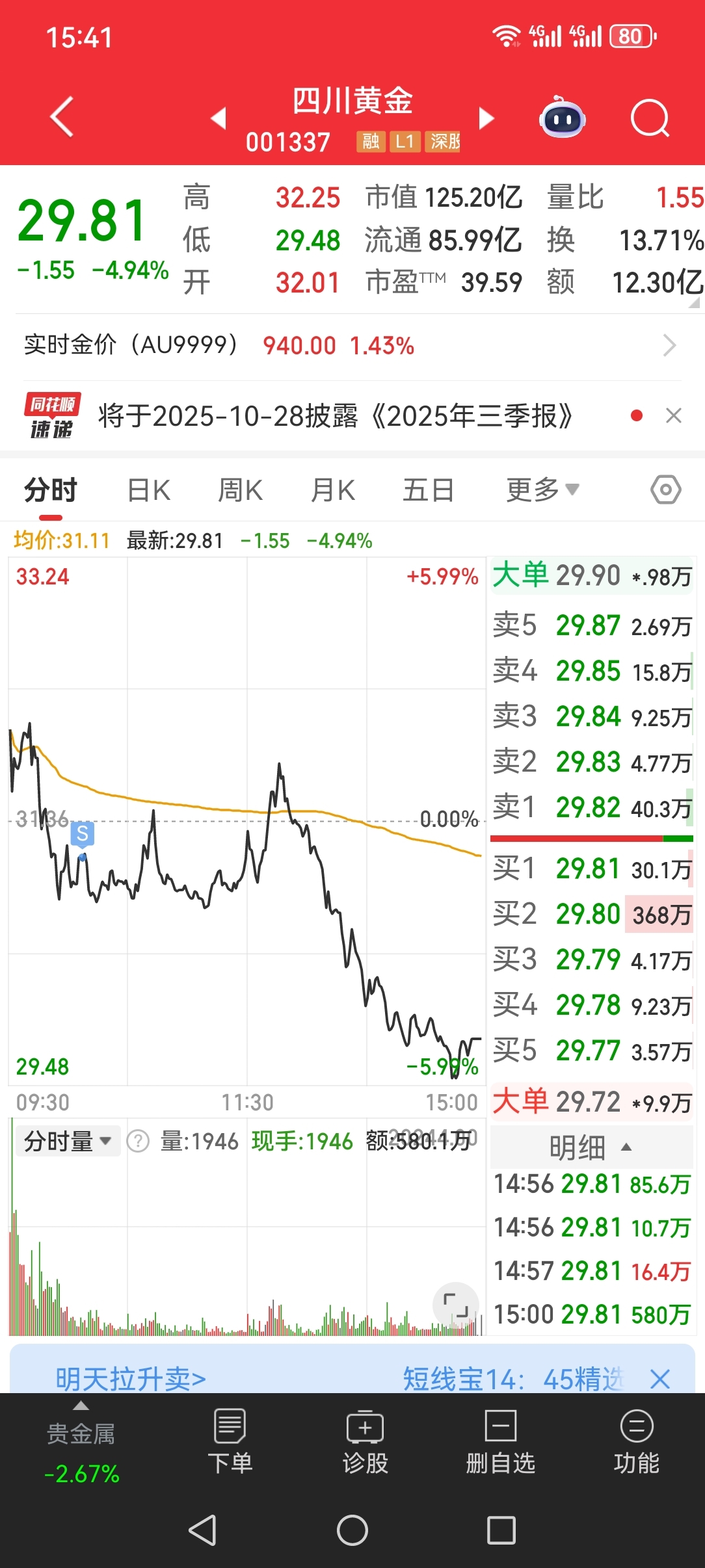 有些股跟它不投缘真是不行,这是第三次买这个弱J黄金 ,每次都是赚不到钱,这次又玩了个寂寞,坚决拉黑,昨天上午本该买豫光金铅的犹豫了,下午就买了这个L圾 唉!
